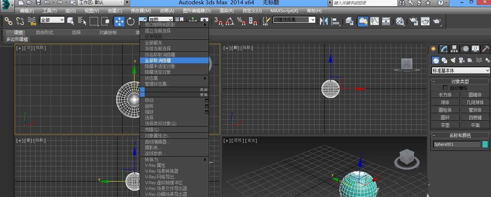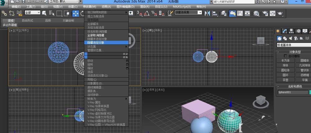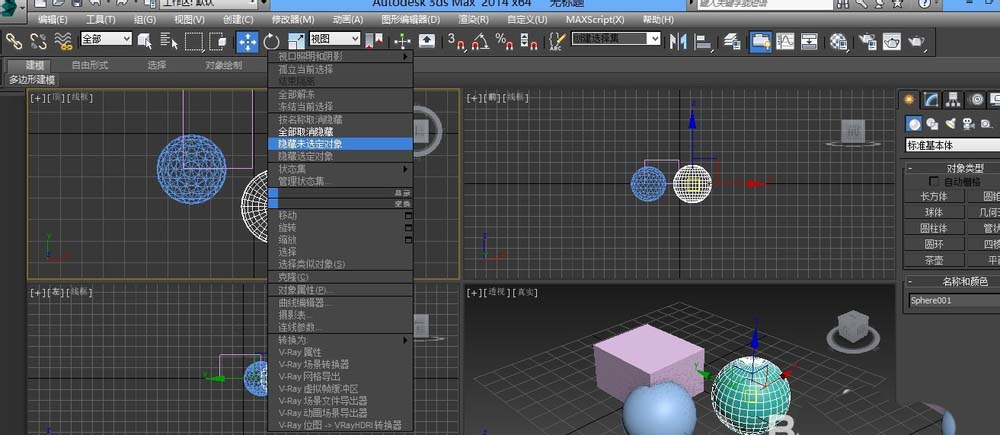 3、選擇其中一個(gè)幾何體,右擊鼠標(biāo),找到隱藏未選擇對(duì)象