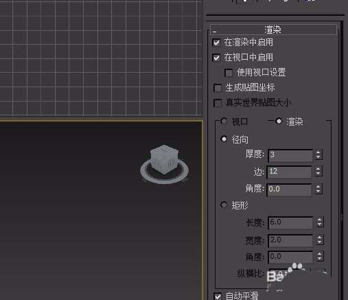 7、再在修改里找到渲染選項,將在渲染中啟用和在視口中啟用勾選上,然后設置參數如圖所示: