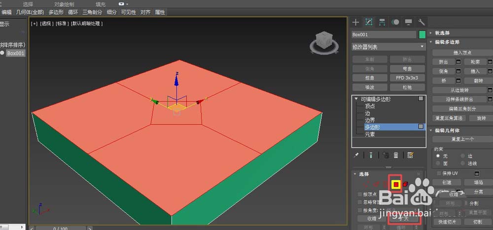1、首先打開3dmax,創建一個長方體,設置長寬分別均為300mm,高為50mm,然后最大化顯示,并將其設置為可編輯多邊形。