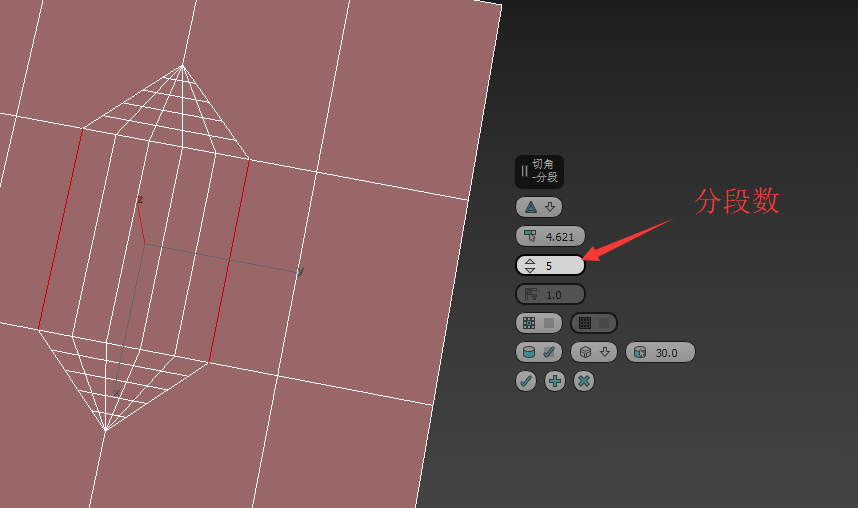 6、邊層級的切角有許多設(shè)置。如圖,首先可以設(shè)置分段數(shù)。