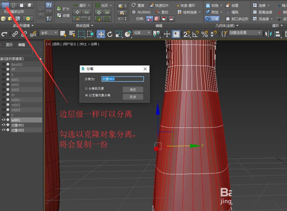 4、如果我們想要復制一份,點擊分離按鈕后,勾選以克隆對象分離。