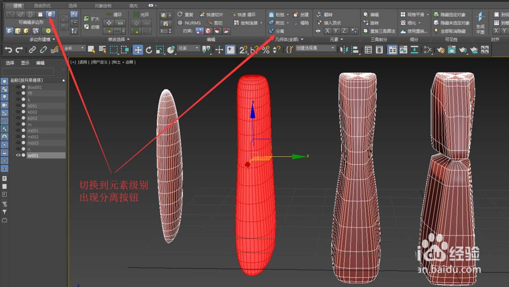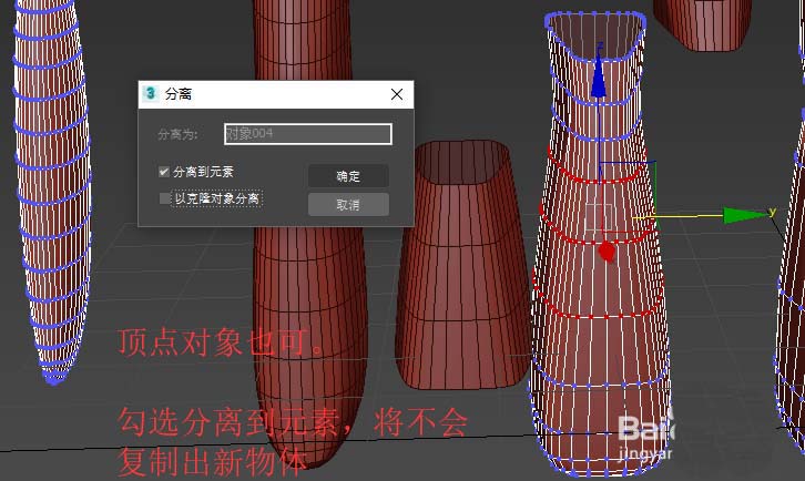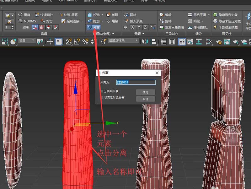 2、下面說分離元素的辦法。選中一個對象,切換到元素層級,選中一個元素,點擊分離,并在彈出對話框輸入名稱即可。默認會分離成為另外一個對象。