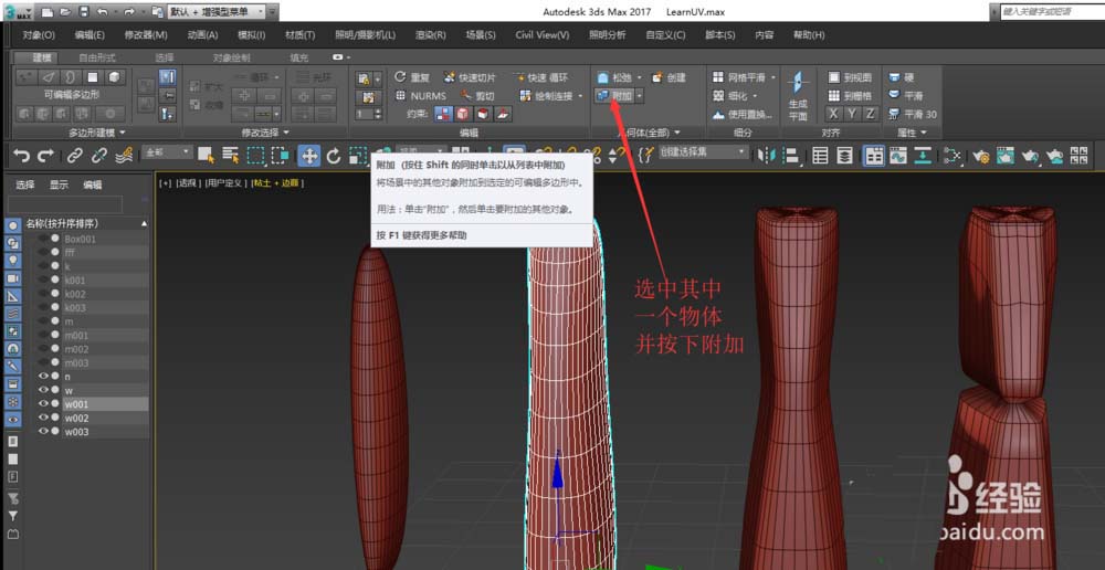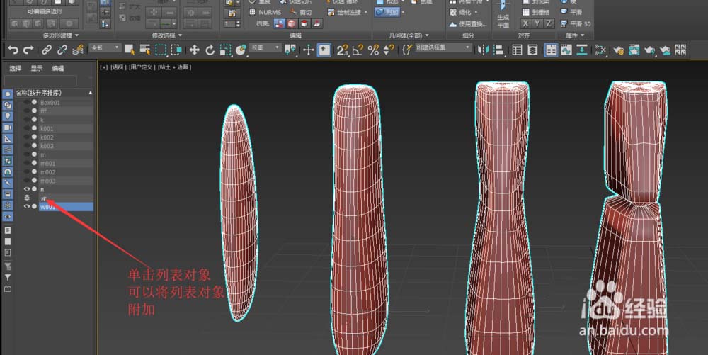 2、直接單擊視圖中另外的對象,就可以附加進去成為元素,同時原對象在左側列表中消失。單擊列表中的對象效果一樣。