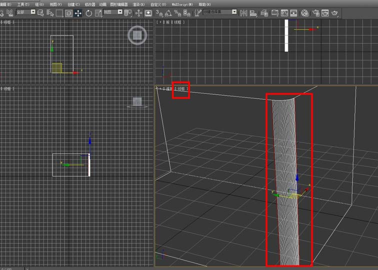 8、進(jìn)入線框顯示,可以看到分段的地方有很多線條,分段的線條越多,圓角就越圓滑