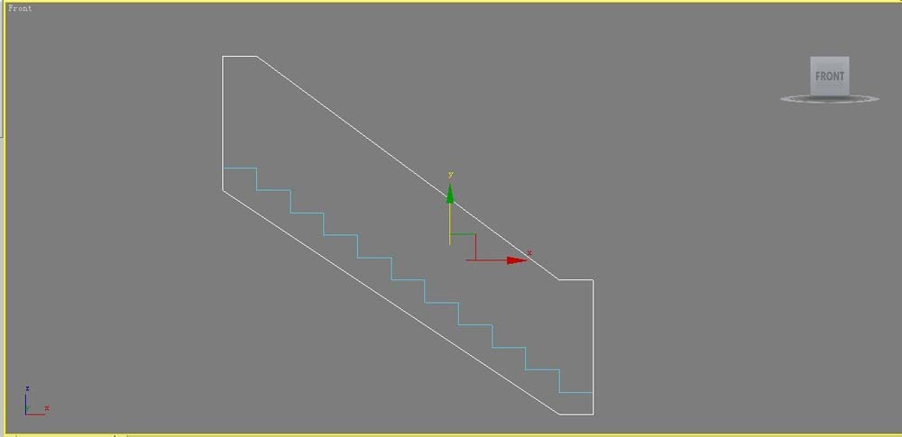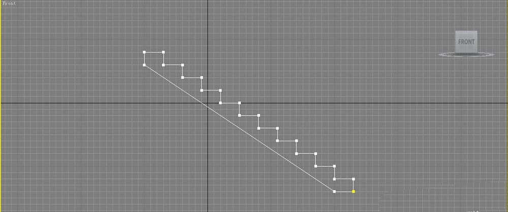 2、將前視圖最大化顯示,快捷鍵Alt+W。單擊(創建)/(線形)/【Line】(線)按鈕,在前視圖中繪制下圖圖形,控制踏步的寬度和高度分別為水平三個柵格和垂直兩個柵格。