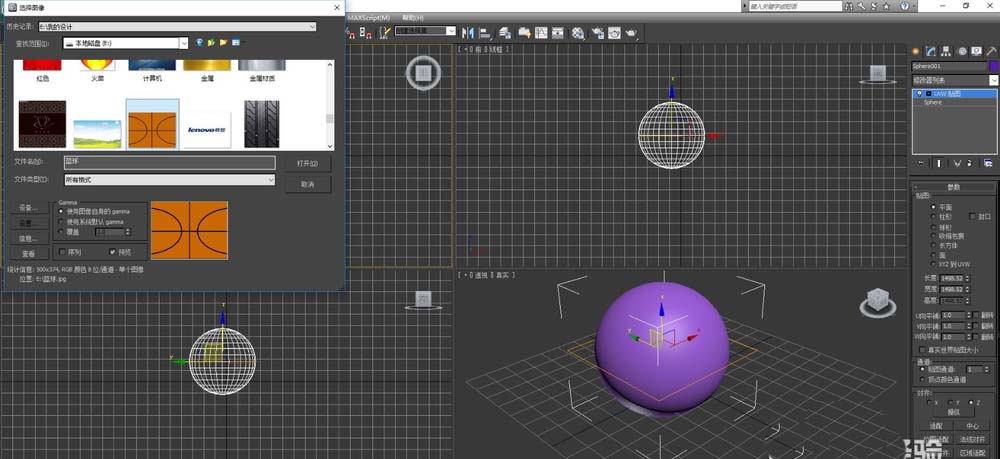 4、單擊位圖適配按鈕,彈出對話框,選擇一個籃球材質圖片,如圖所示