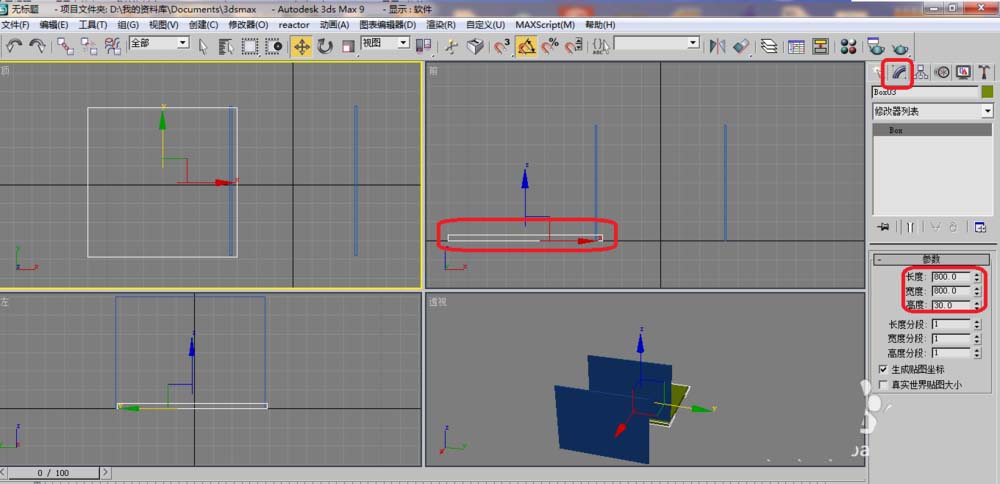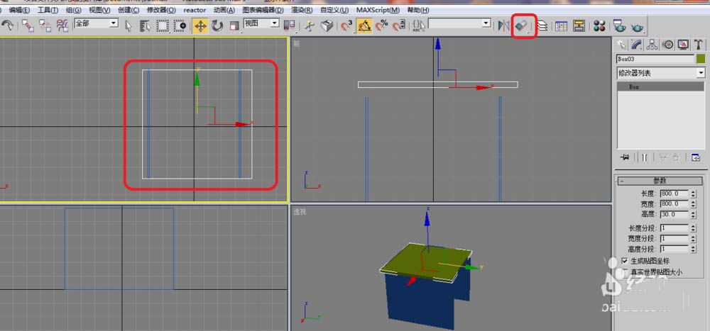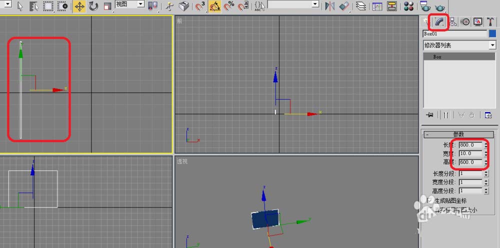 2、單擊具右邊工具欄的修改參數,這里說明一下一定在頂視圖選擇在輸入數字800、10、600、在不同的視圖輸入是不一樣的。