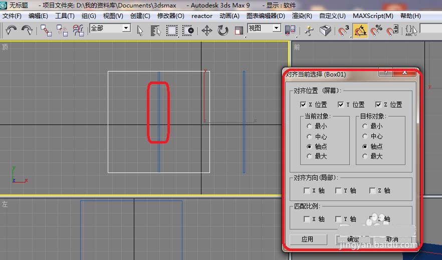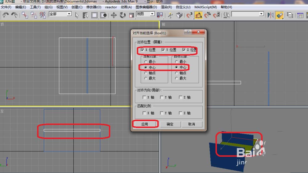 7、如下圖所顯示是選擇左邊的物體,選擇后單擊就會出會這一個。對準如下圖設置。單擊應用,不是確定哦。