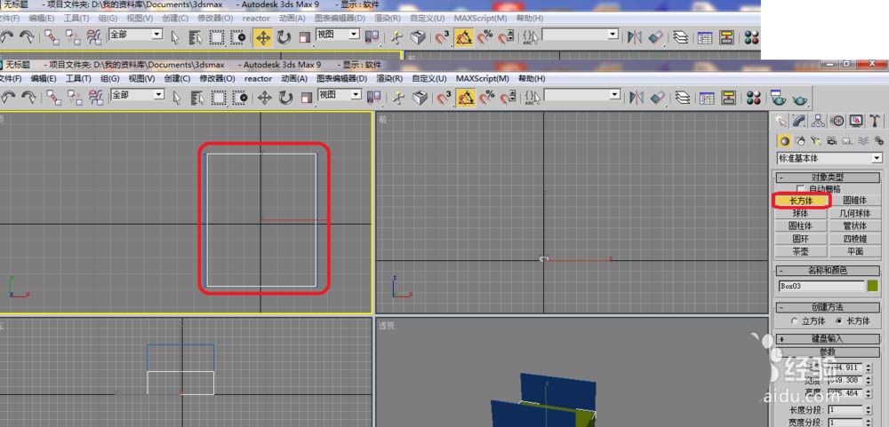 4、如下圖在進行畫第二個圖,選擇長方體,畫出如下圖。