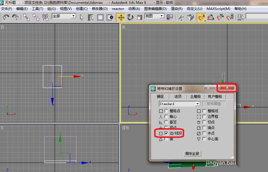 5、右擊捕捉開關,這要打開,選擇邊/線段,在關閉。