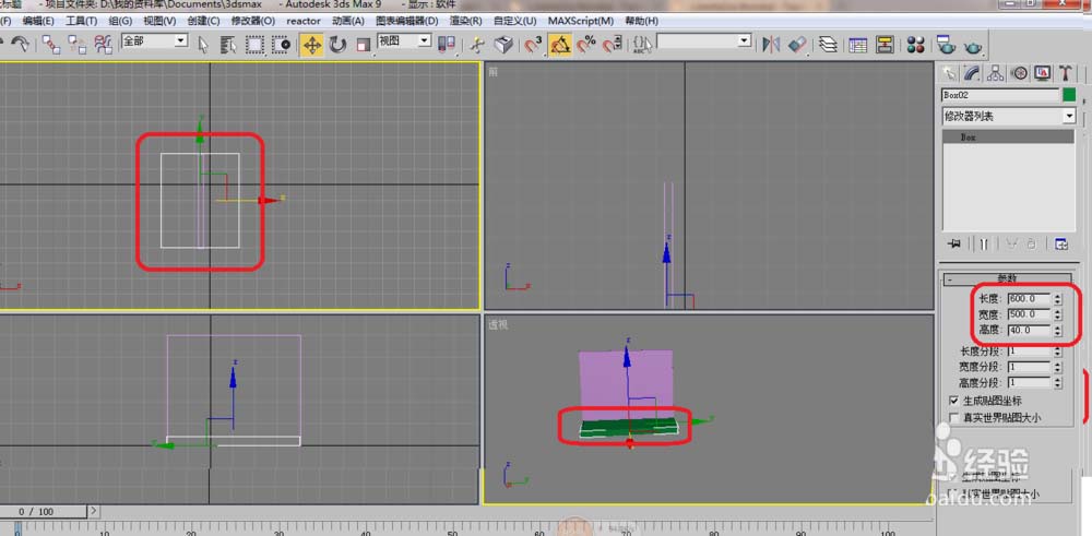 2、如下圖更改參數為600、30、500,在透視圖可以按alt鍵在按鼠標滾動鍵就可以移動透視圖。