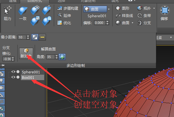 3、接著展開多邊形繪制面板,點擊新對象,創建一個空對象(可編輯多邊形)并自動選中,如圖。