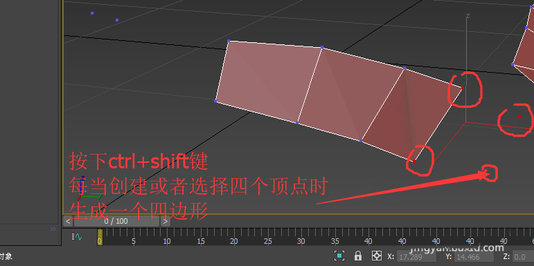 9、按下ctrl+shift鍵,單擊,可以選擇一個頂點或者在空白位置創建一個頂點。每當創建/選擇四個頂點時,就會生成一個四邊形。