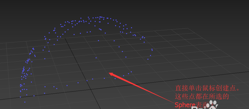 4、然后我們可以隱藏球面模型,也可以不隱藏。直接單擊鼠標,會在拾取表面的位置上創建頂點。