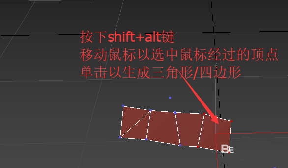 10、按下shift+alt鍵,移動鼠標以選中鼠標經過的頂點。單擊以生成三角形/四邊形。
