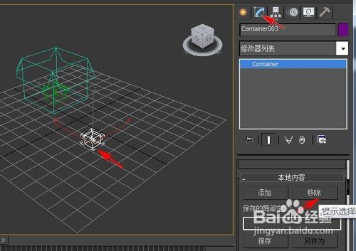 8、從容器中移除對象:選擇要從其移除對象的已打開容器。(無法選擇已關(guān)閉容器中的對象。)在“修改”面板 “本地內(nèi)容”卷展欄上,單擊“移除”。