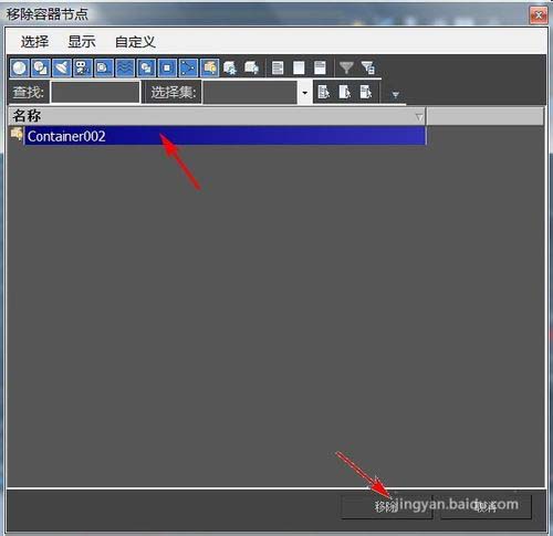 9、在“移除容器節(jié)點(diǎn)”對話框的列表中高亮顯示要移除的對象,然后單擊“移除”。相應(yīng)對象會隨即從容器中移除,并添加到場景中。
