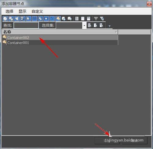 7、使用“添加容器節(jié)點(diǎn)”對話框(該對話框打開后會高亮顯示要添加的對象),然后單擊“添加”。所添加的對象在視口中仍然可見,但關(guān)閉容器時(shí),它們會從場景中移除并引用容器的 MAXC 文件。