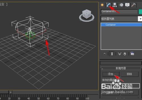 6、將對象添加到容器中:在視口中,選擇要向其中添加對象的已打開容器,然后在“修改”面板 “本地內(nèi)容”卷展欄中,單擊“添加”。