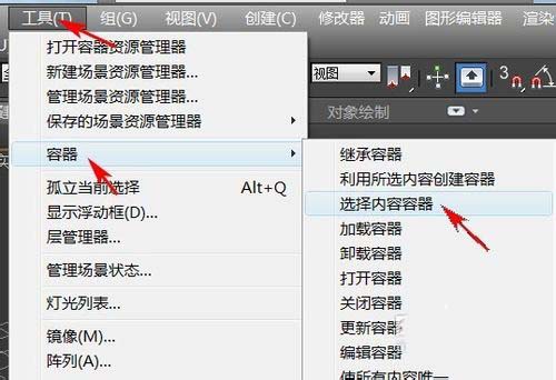 10、標(biāo)識對象所屬的容器:選擇場景中要標(biāo)識其容器的對象。在“工具”菜單中,選擇“容器”“選擇內(nèi)容容器”。