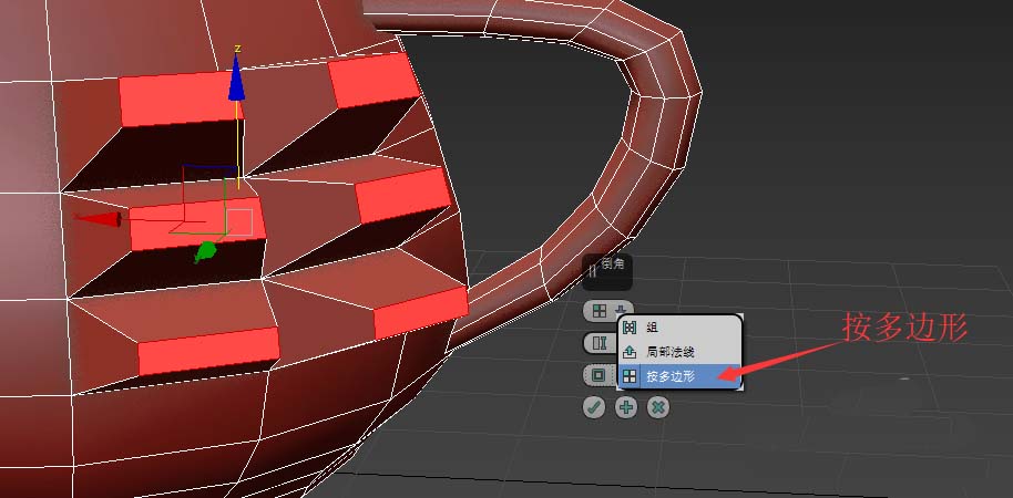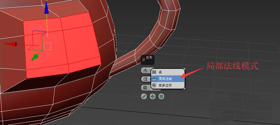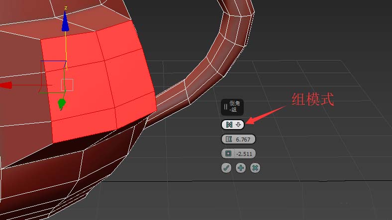 3、當對多個多邊形進行倒角時,倒角命令可以選擇模式。如下圖,是倒角命令的三種模式:組/局部法線(合并),多邊形(分離)