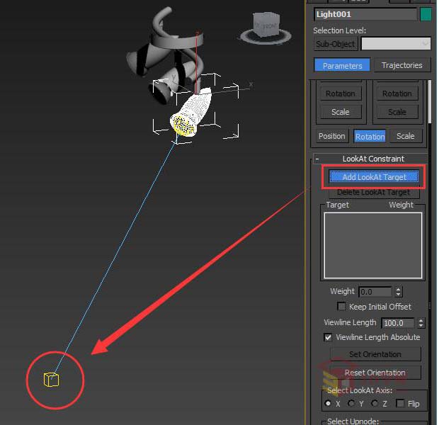6、點擊'Add LookAt Target'后拾取燈光目標,為射燈添加注視目標。