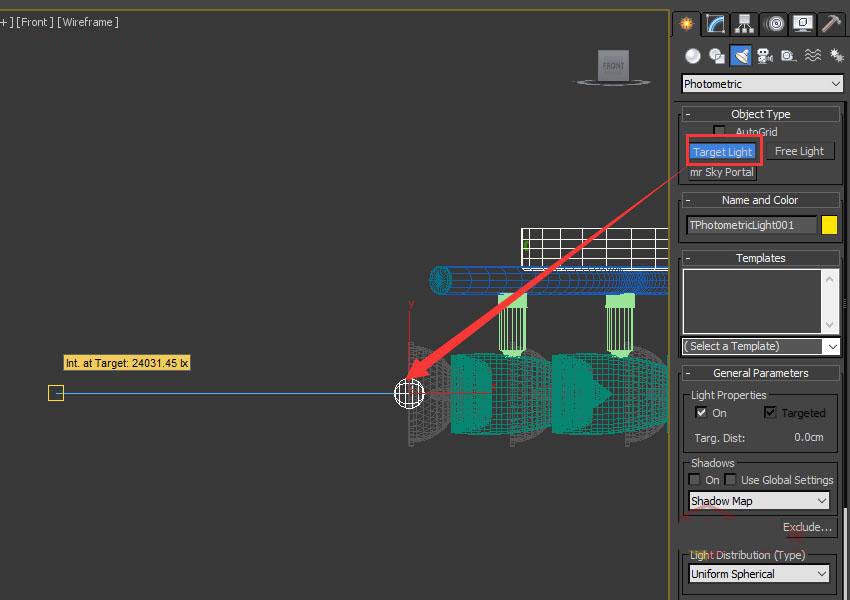 3、創建出一個目標燈光,并擺放好與射燈的位置。
