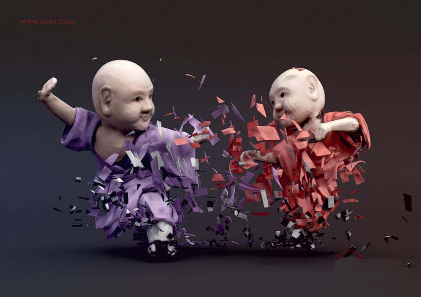 最后一步就是渲染出圖啦~(需要注意一點的是Bomb會根據(jù)模型的布線去炸裂開,所以使用一個0分段的面是得不到任何效果的.)
