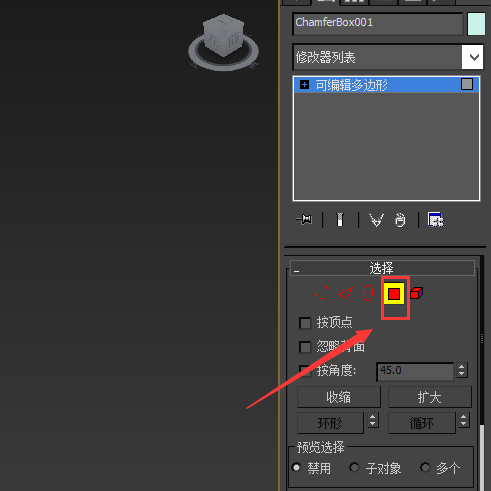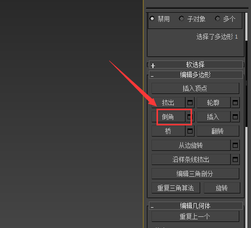 8、轉(zhuǎn)換為可編輯多邊形以后,在修改里選擇多邊形選項(xiàng),如圖所示: