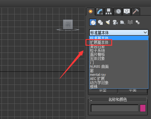 2、在該界面的右側(cè)將模式切換到擴(kuò)展基本體選項(xiàng),如圖所示: