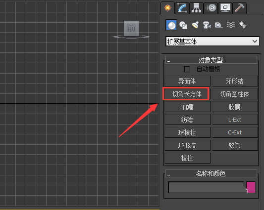 3、切換為擴(kuò)展基本體以后,在其內(nèi)選擇切角長方體選項(xiàng),如圖所示: