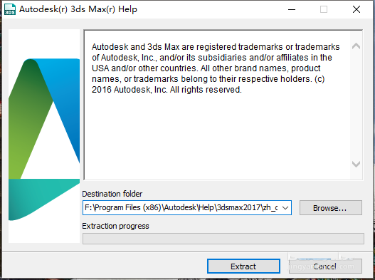 4、等待下載結(jié)束后,會得到一個(gè)3dsMaxHelp_chs.exe安裝文件。設(shè)置安裝路徑(可以自己隨意設(shè)置),然后等待安裝完畢。