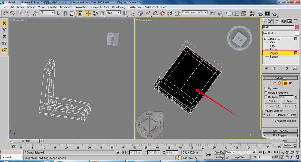 8、按下4鍵,進(jìn)入(多邊形)層級(jí),將下面的面刪除,效果如圖。(椅子靠背及座墊基本完成了,下面對(duì)它進(jìn)行圓滑。