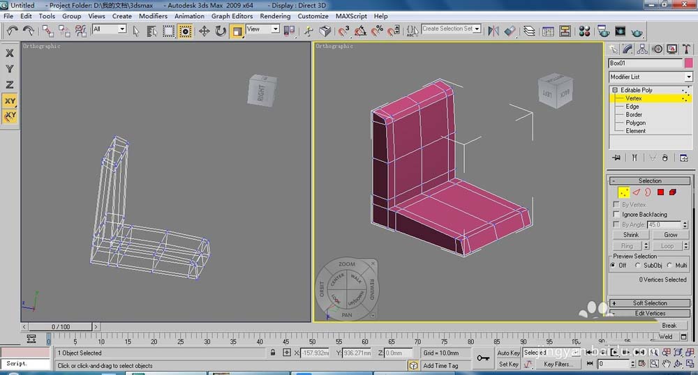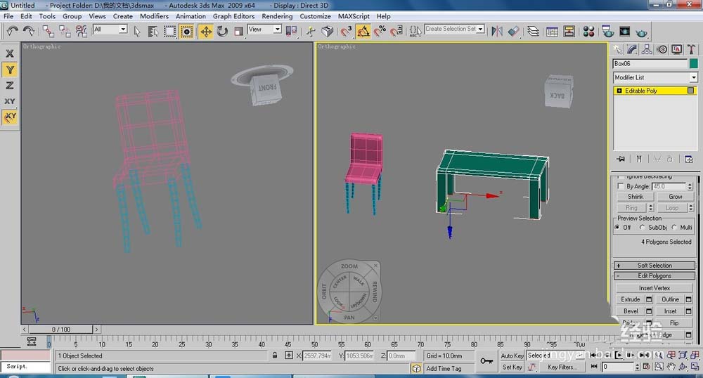4、為了后面制作椅子座,下面必須用擠出來增加段數(shù),厚度為100就可以了,效果如圖所示。