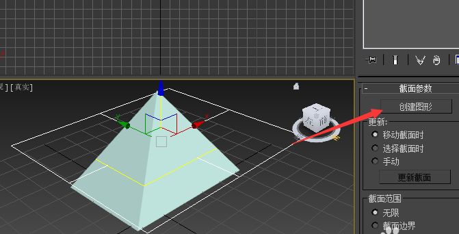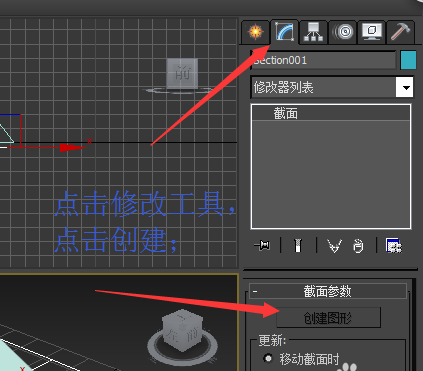 2、在立體圖中,點(diǎn)擊創(chuàng)建面板——點(diǎn)擊圖形——截面。