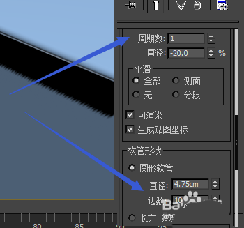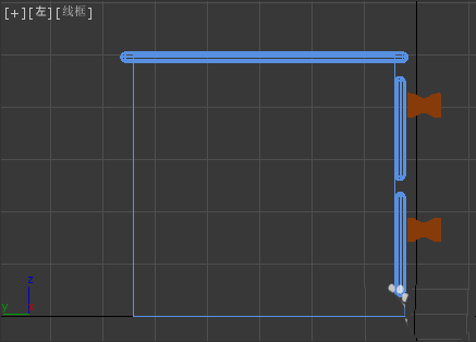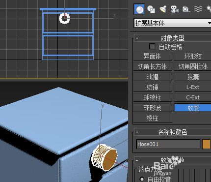 7、選中軟管在前視圖畫一個(隨便畫之后我們就可以修改參數)