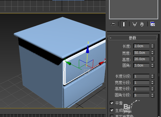 5、最后移動物體在上面;圓角也可以設置,這樣柜子上面就會變成圓滑的樣子;