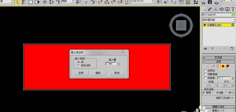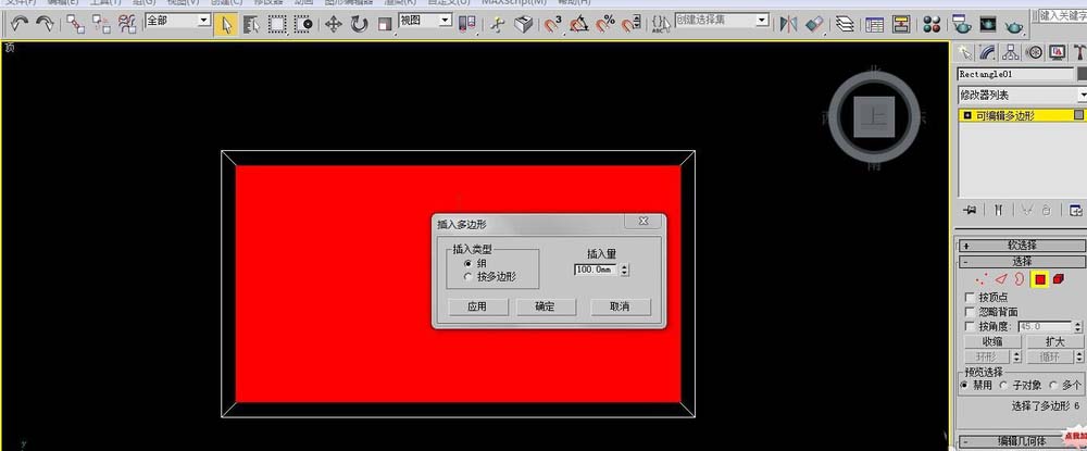 3、單擊右鍵轉(zhuǎn)換為可編輯多邊形,面命令,選中面,右鍵,插入給數(shù)據(jù)100mm,然后選中面給分離出來。