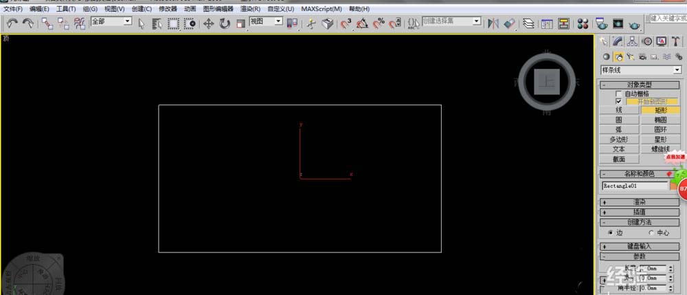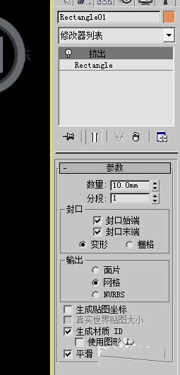 2、畫出一個(gè)矩形框來,(如果你需要走廊布置波打線,這里就捕捉畫出你的走廊矩形)在修改面板中,給出擠出命令,擠出數(shù)量為10mm,這個(gè)是地磚厚度。