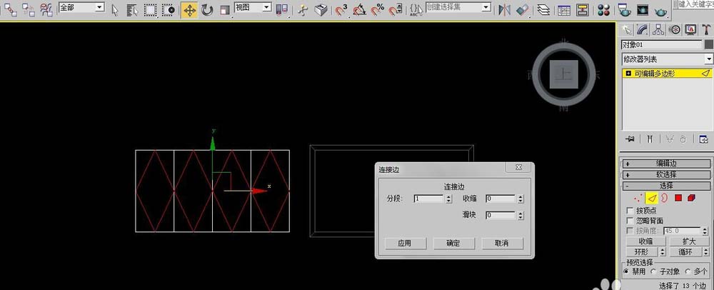 4、選中中間的面,在修改面板中,給線命令,選中上下兩個(gè)線,右鍵,連接,數(shù)量為若個(gè),再框選所有線,右鍵,連接命令,數(shù)量為1,右鍵,切角量,數(shù)量為40即可。
