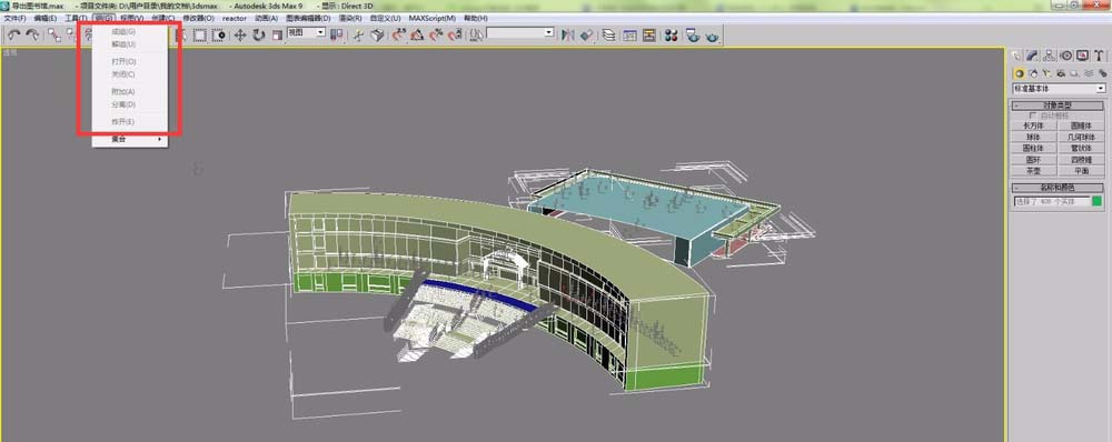 1、首先我們打開一個還沒完全成型的模型,現在需要把這個模型導入合并到其他模型中來,但是直接合并的話需要選擇很多個box、line等實體,還有可能與其他模型存在重名的情況,這時候就想到把模型成組了。