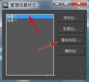 6、在場景狀態列表中,高亮顯示要重命名的場景狀態,單擊“重命名”按鈕。