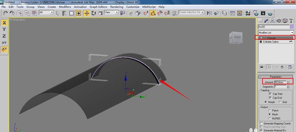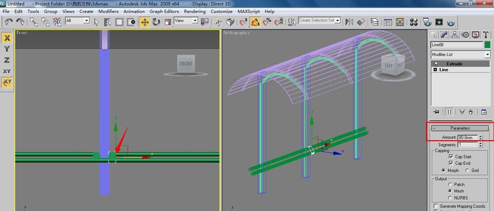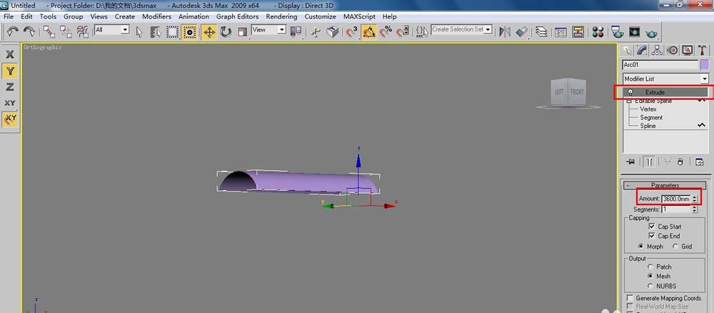 3、在繪制的線(xiàn)形添加【Extrude】(擠出)命令,設(shè)置擠出高度為3600,作為候車(chē)亭的頂。