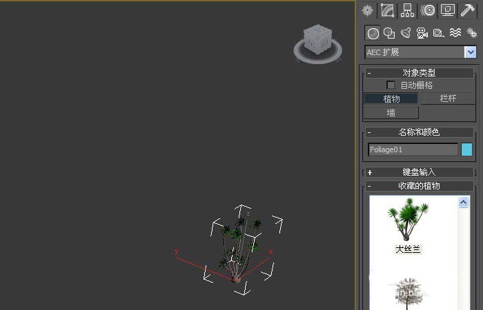 6、在【AEC擴(kuò)展】的面板上,鼠標(biāo)左鍵單擊【植物】下的(大絲蘭樹(shù)),接著在透視圖中,拖動(dòng)繪制一個(gè)大絲蘭樹(shù)出來(lái),如下圖所示。