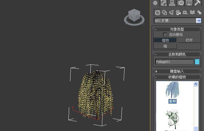 5、在【AEC擴(kuò)展】的面板上,鼠標(biāo)左鍵單擊【植物】下的(垂柳樹(shù)),接著在透視圖中,拖動(dòng)繪制一個(gè)垂柳樹(shù)出來(lái),如下圖所示。