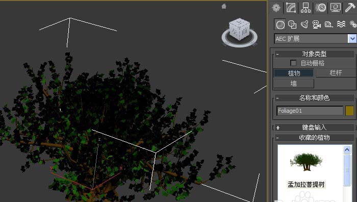 2、在【AEC擴(kuò)展】的面板上,鼠標(biāo)左鍵單擊【植物】下的(孟加拉菩提樹(shù)),接著在透視圖中,拖動(dòng)繪制一個(gè)孟加拉菩提樹(shù)出來(lái),如下圖所示。