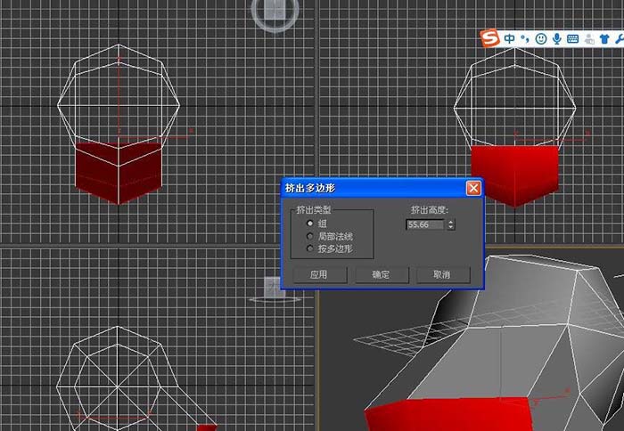 3、選擇圖中的多邊形,“擠出”適合的高度。