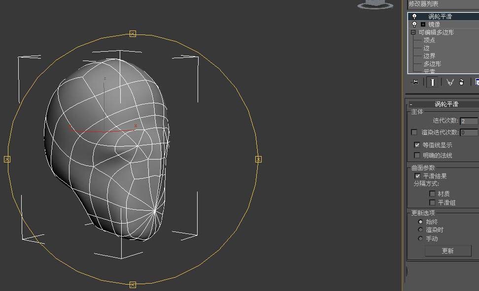 17、添加“渦輪平滑修改器”并點選“按等值線顯示”后的效果。基礎(chǔ)布線的完成和正確,是后續(xù)細(xì)節(jié)建模和骨骼綁定的基礎(chǔ)。