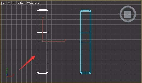 6、在頂視圖里,給我們剛剛創(chuàng)建的物體添加兩條循環(huán)線,如圖所示: