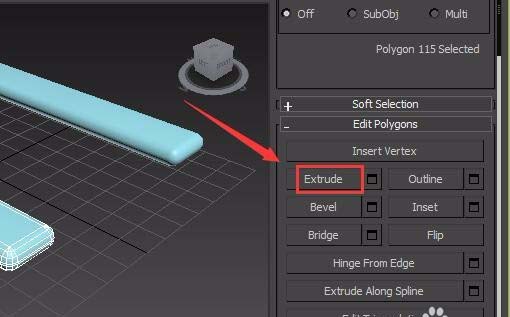 8、按下鍵盤上的數(shù)字4鍵,選擇我們添加的兩條線之間的面,并在edit polygons下找到extrude命令,如圖所示: